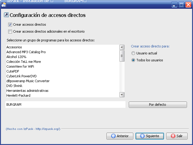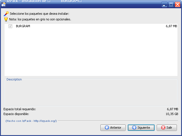 aplicaciones que se van a instalar. En este caso solo BURGRAM. Se