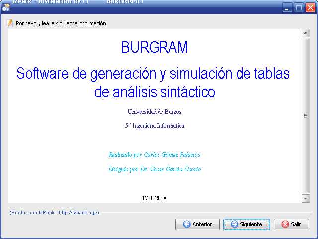 sencillos pasos, permite instalar la aplicación en el sistema.